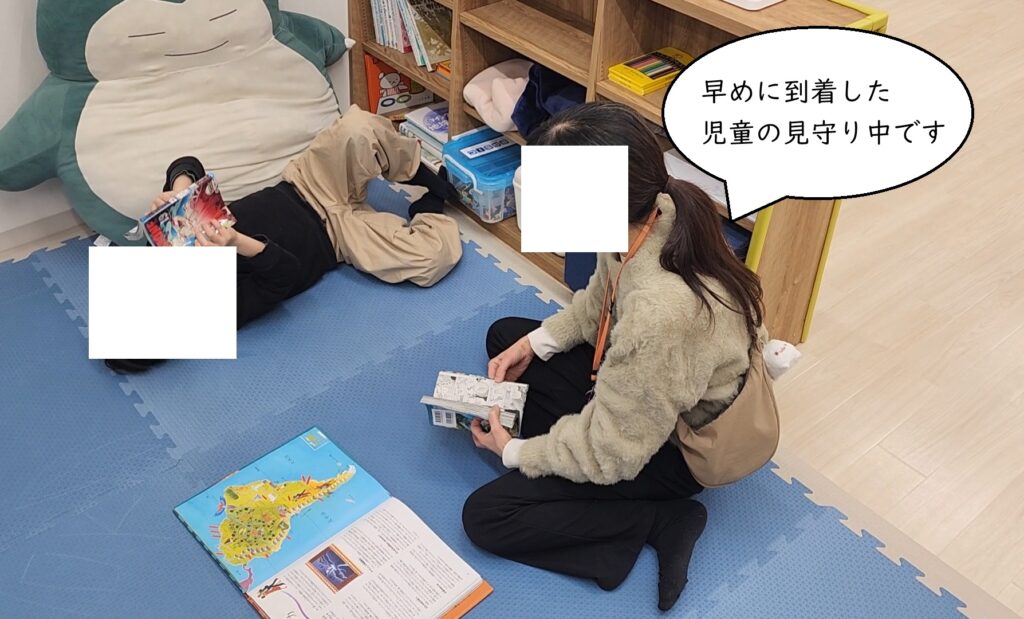 出社後、簡単に引継ぎを受けてから児童の受入れをします。