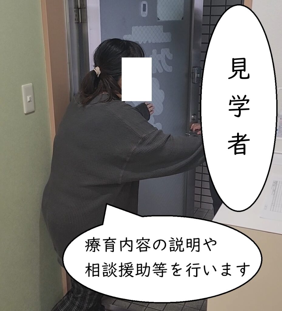 見学者がいる場合には、その対応をします。
