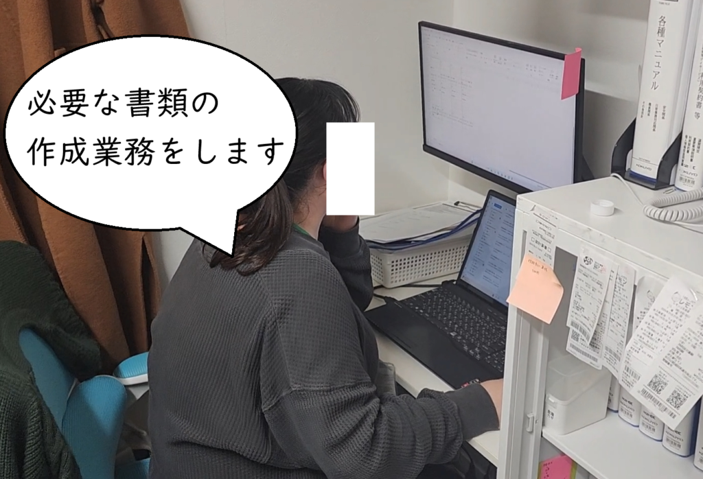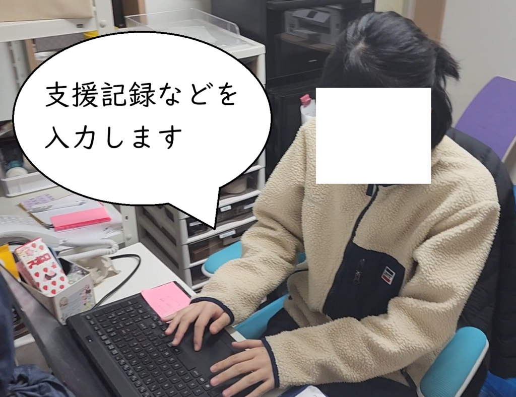 前日、やり残した事務作業の続きを消化したり、本日の療育プログラムの準備をします。