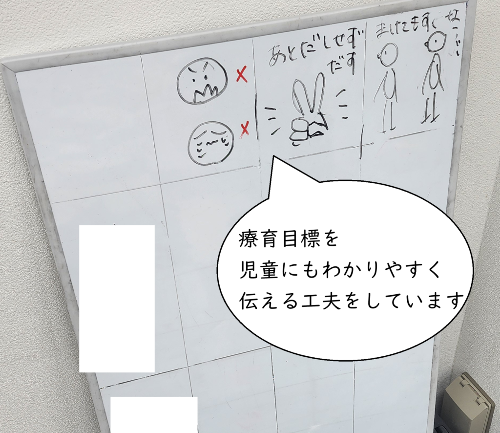 目標の行動を促し、積極的に褒めるような療育をしていきます。