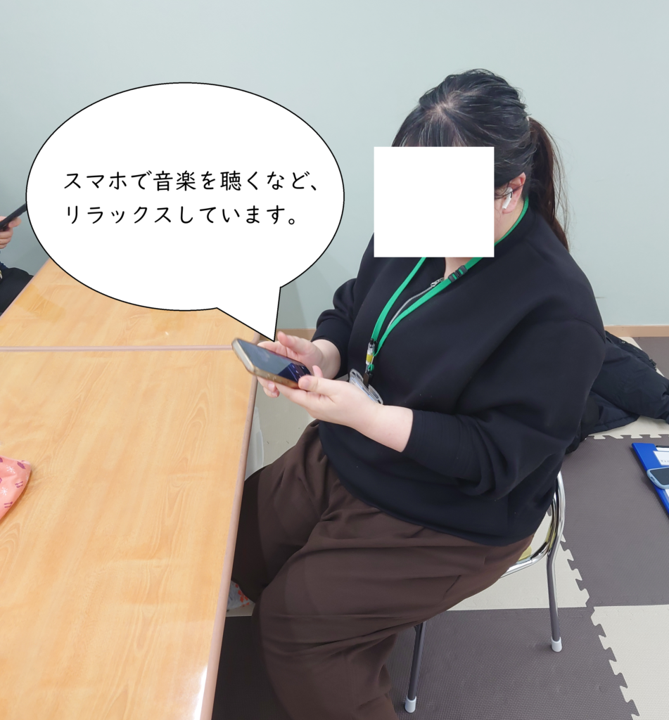 休憩なので自由にお過ごしいただいています。