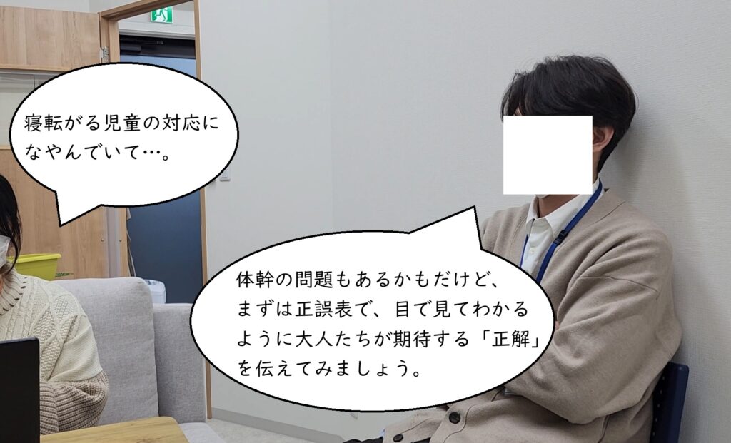 OJTとして、児童発達支援管理責任者からフィードバックを受けます。